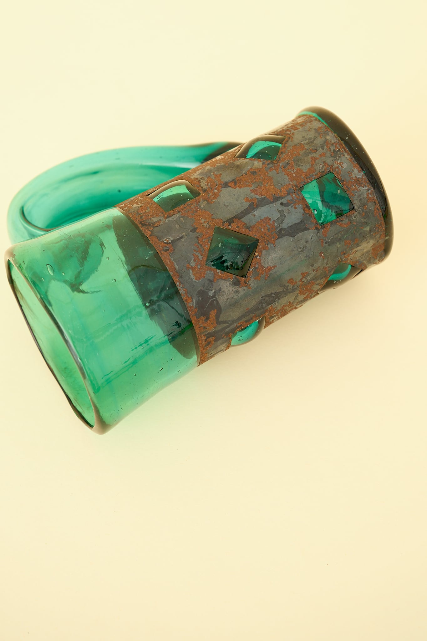 鉄枠の型にガラスを吹き込んで作られていることから、プリズングラスと呼ばれています。