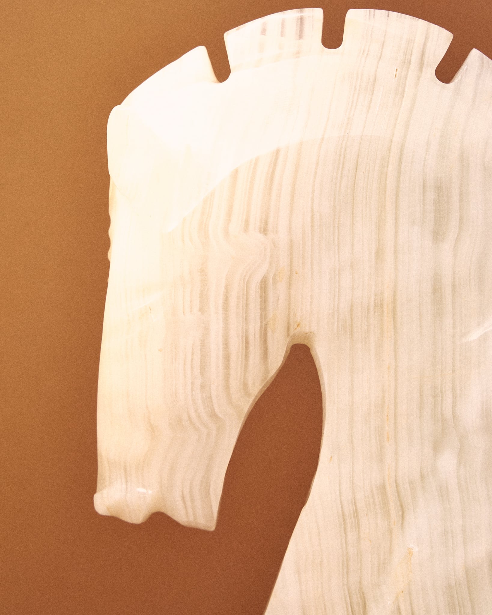 黄色味がかった白乳色と、大理石ならではの透明感が美しい置物です。