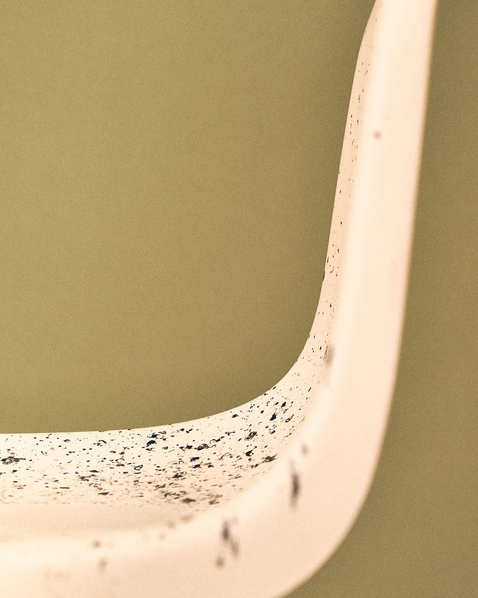 駅のホームでよく見るチェアの素材としても使用されているFRP(繊維強化プラスチック)で一体成型された座面と、独特な形状の鉄脚が組み合わされています。