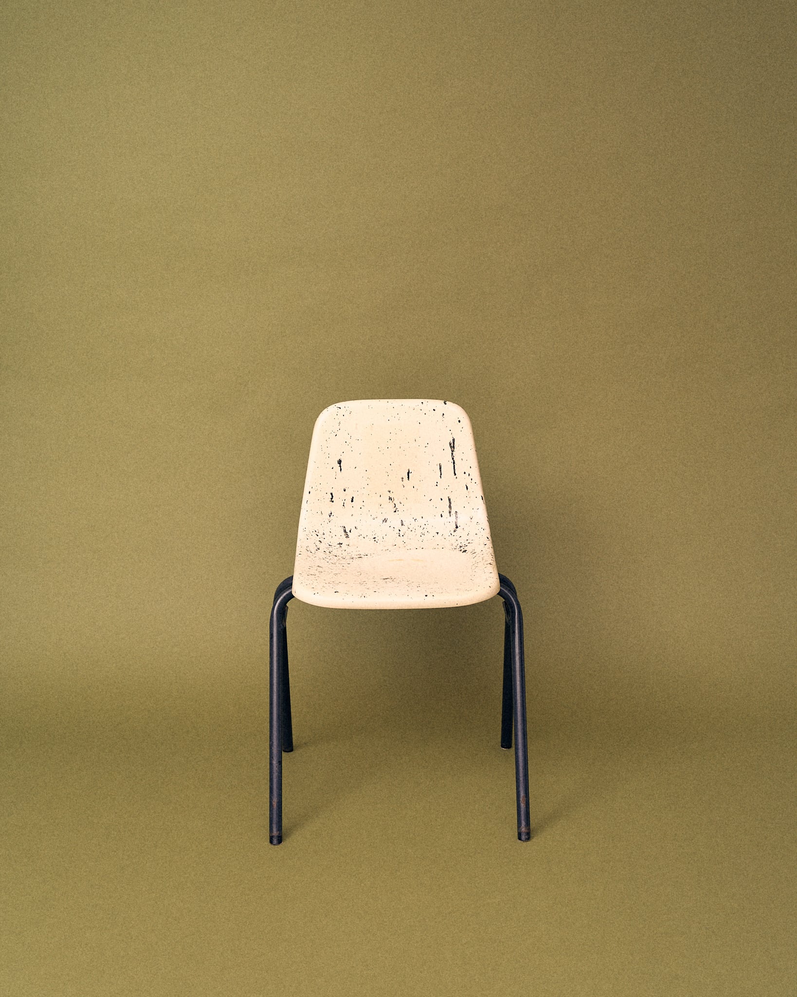 座面や脚部には黒いペンキのような、墨のような飛沫跡が残っていますが、この使用感が逆に似合う場合もあるように思います。