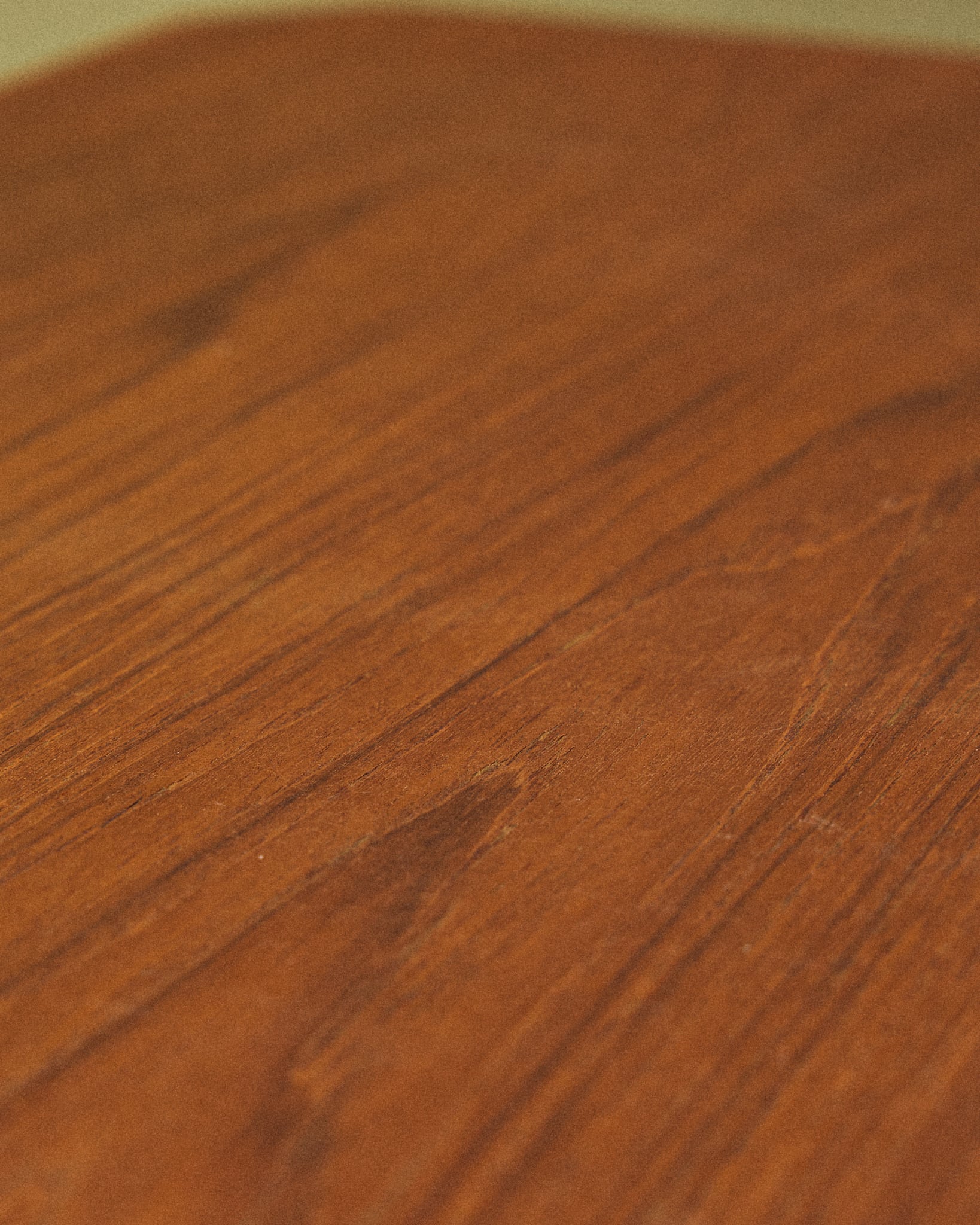 キッチンワゴンとして使用するにはもちろん、シルエットが美しいのでリビングのシーンで移動式の物置きとして使うにも良いでしょう。1段目の棚間は最も低いところでも35cmなので、レコードも綺麗に収まります。年々希少になるチーク材を使用した贅沢なワゴンです。