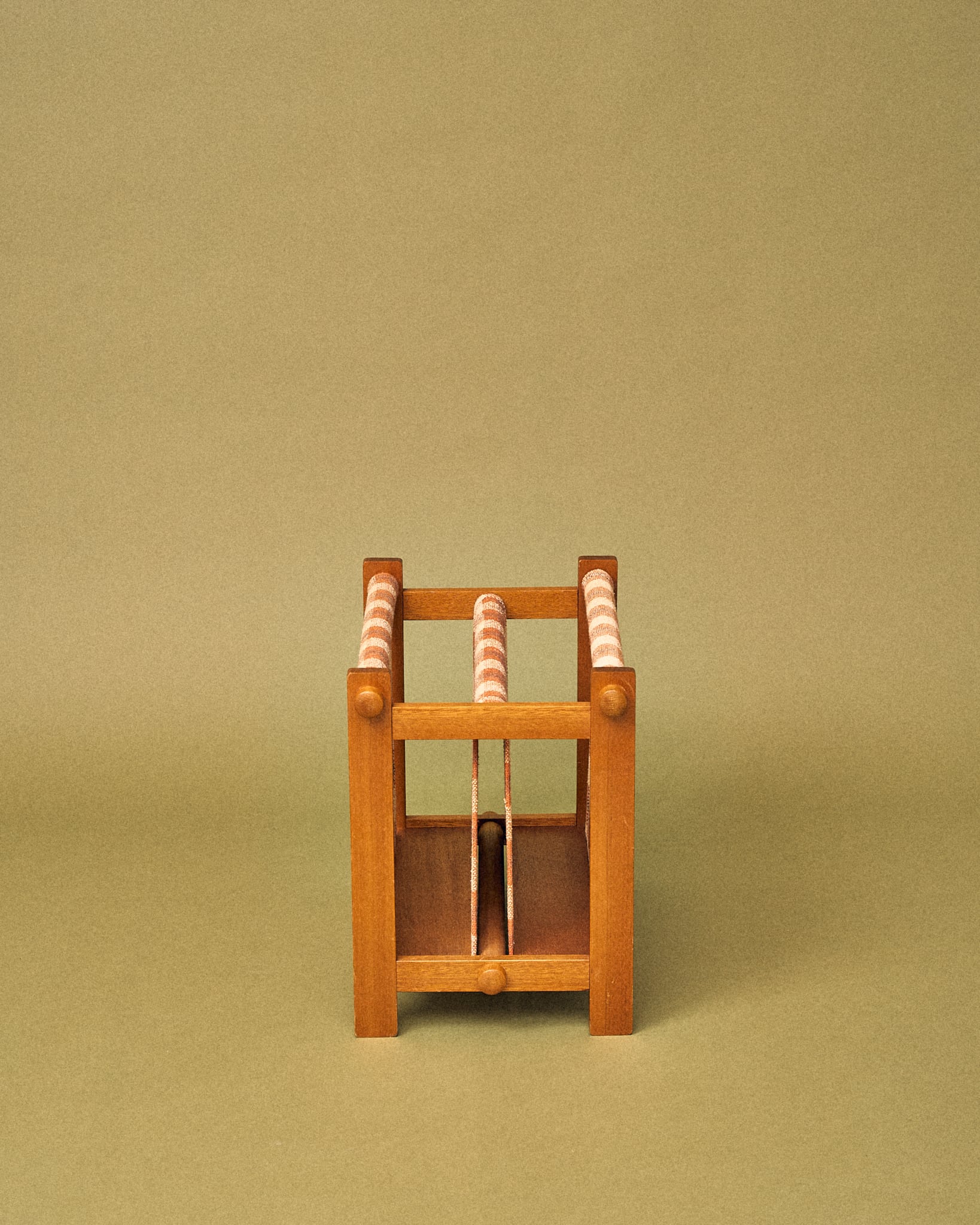 ファブリックの仕切りが可愛らしいマガジンラックです。