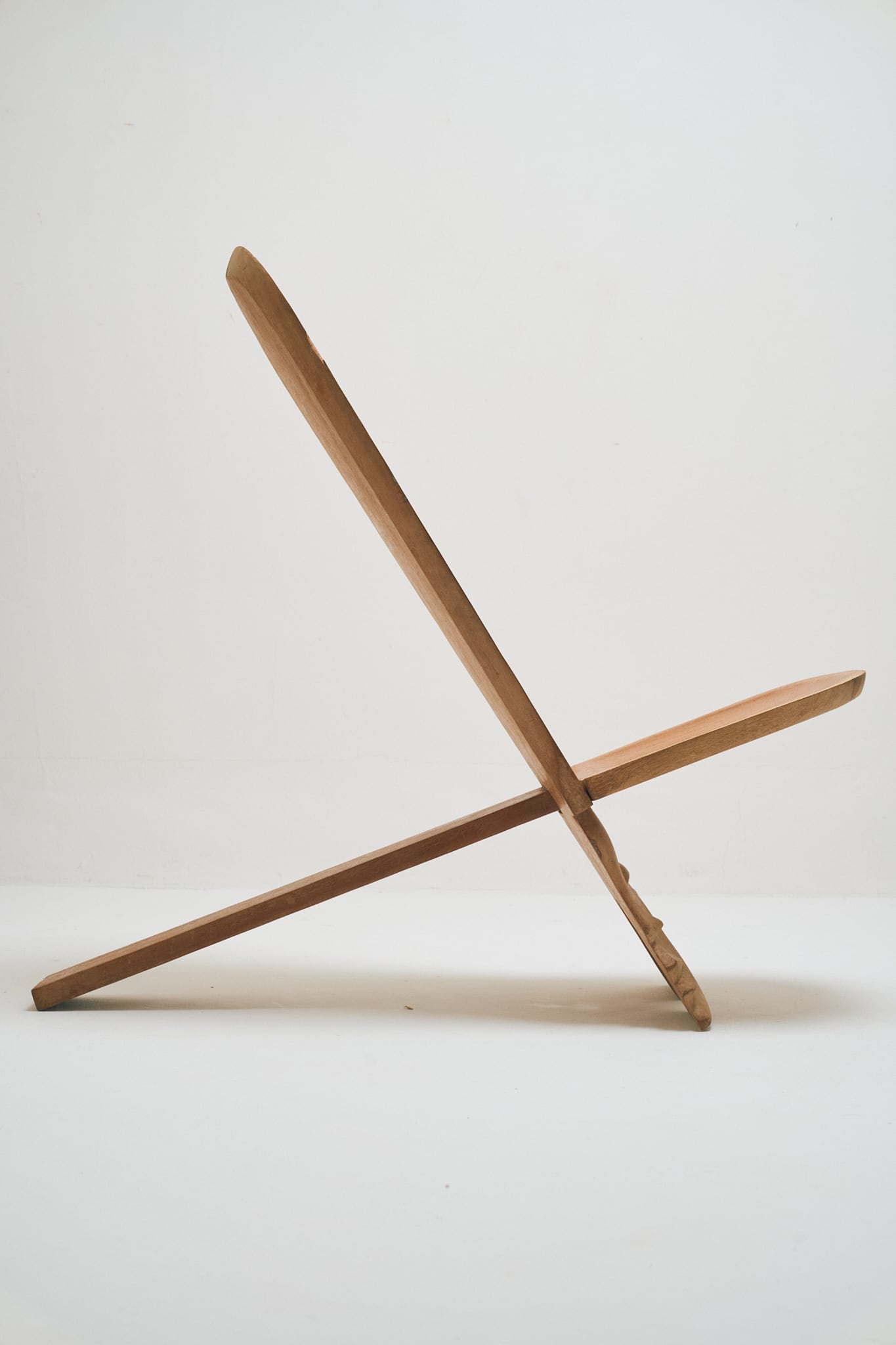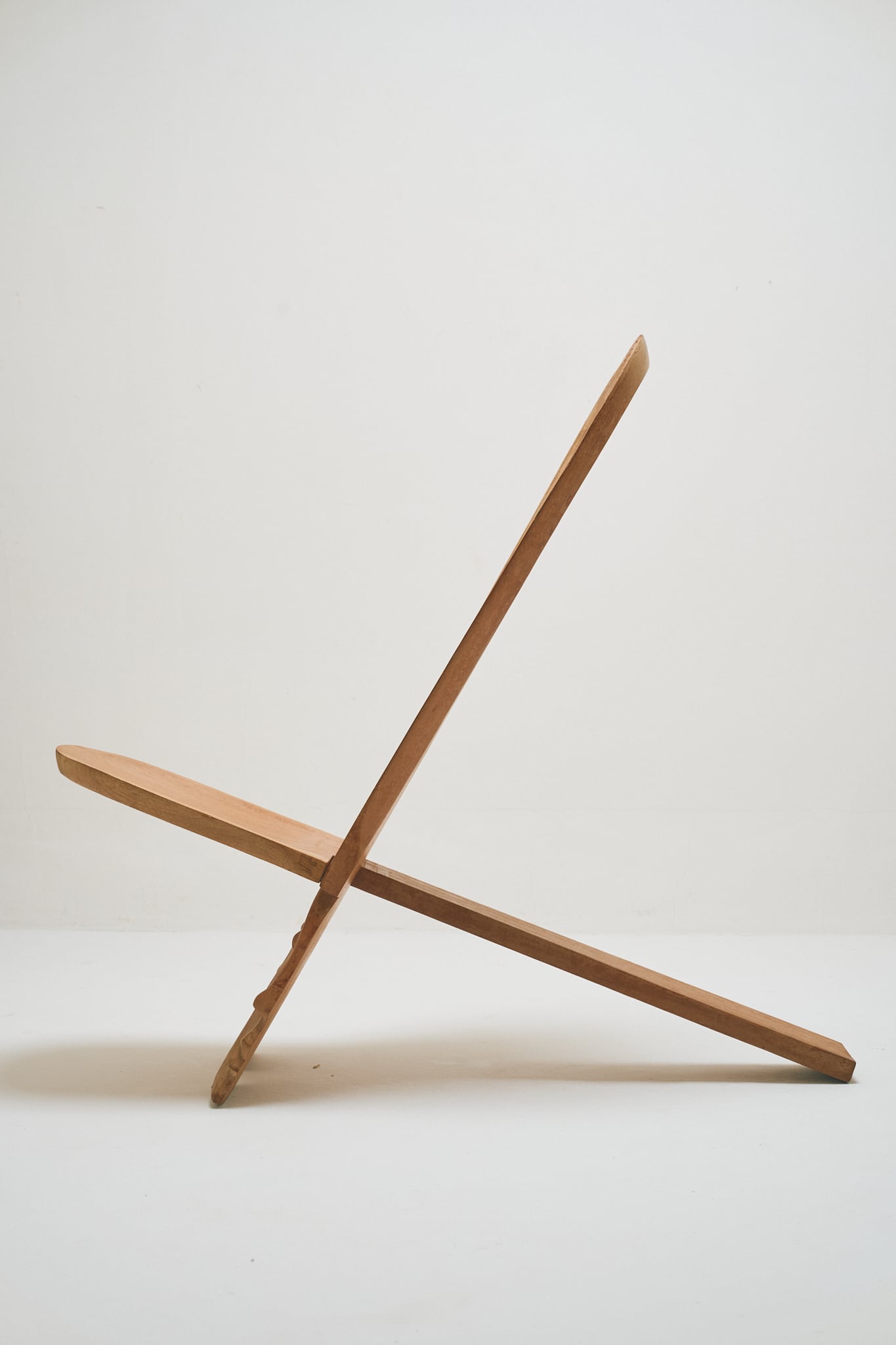 背板となる板に、座面となる方を差し込み、”X”型とすることで身体を支える構造です。