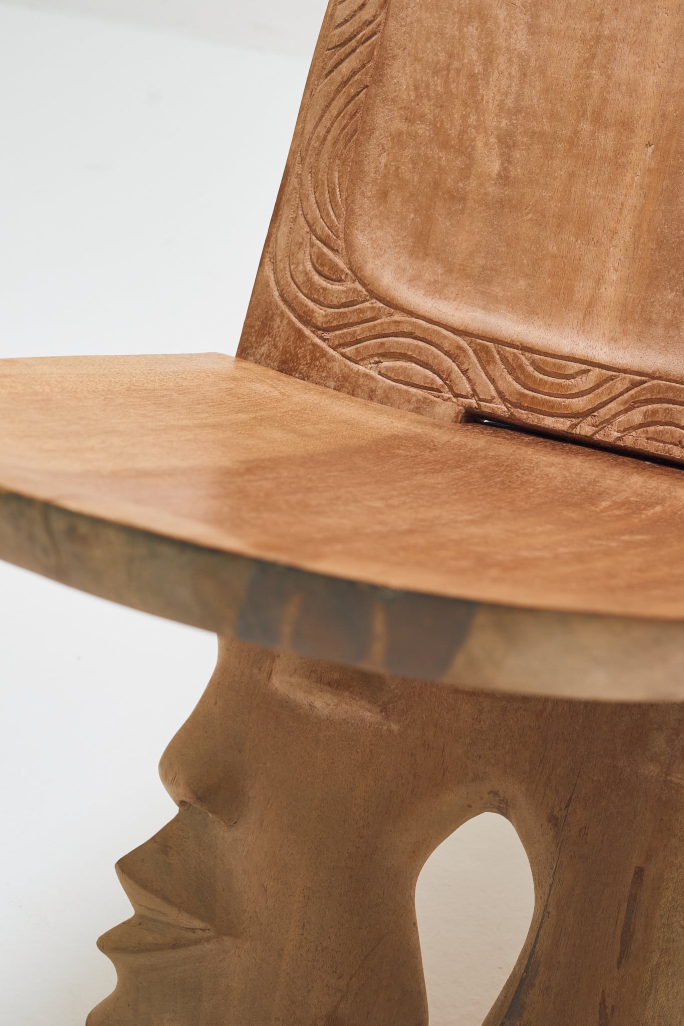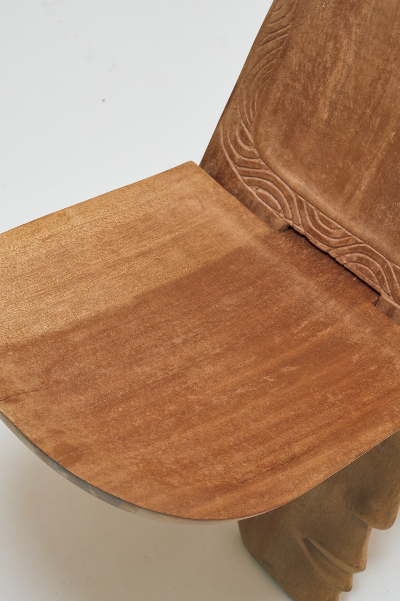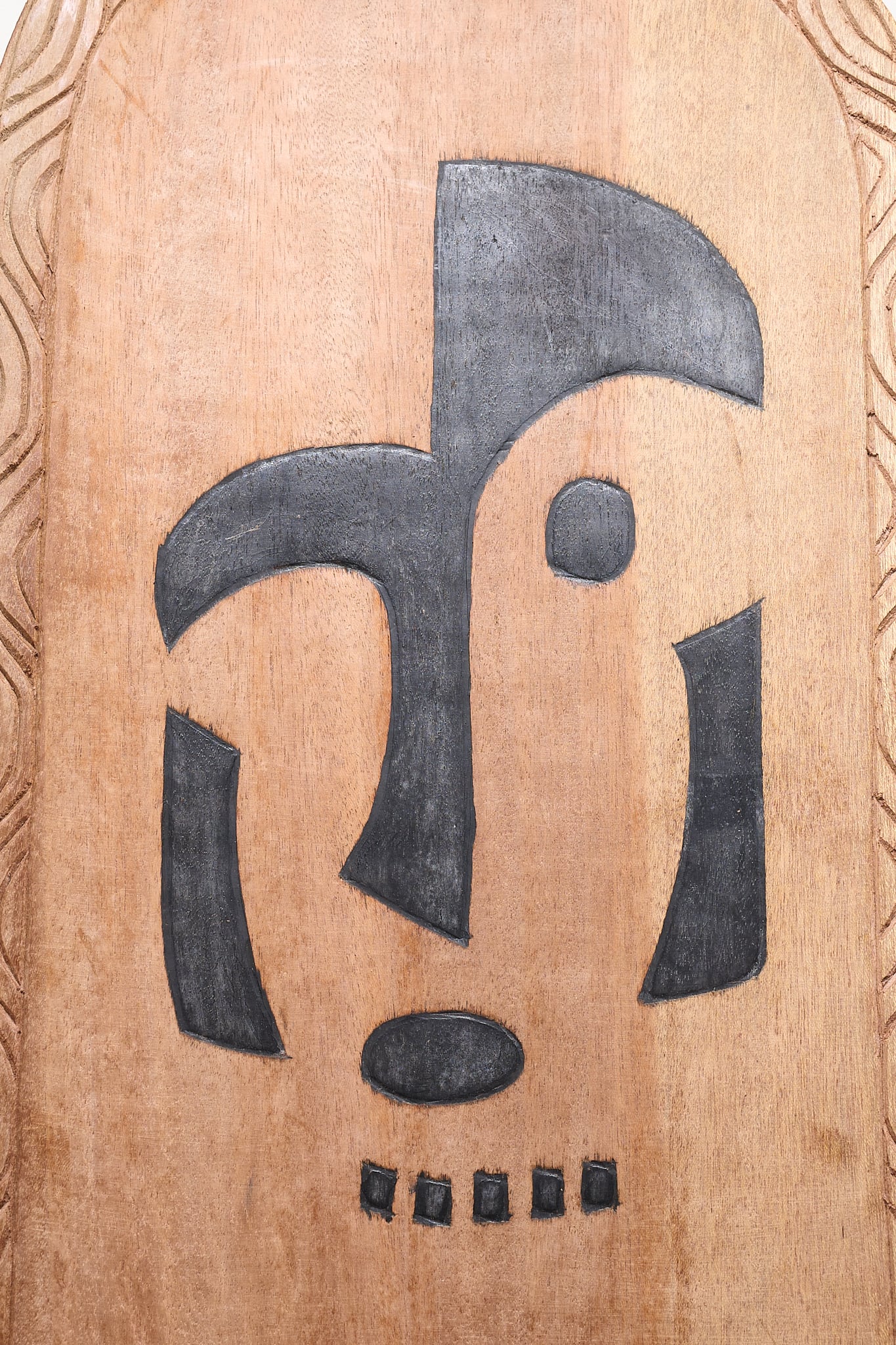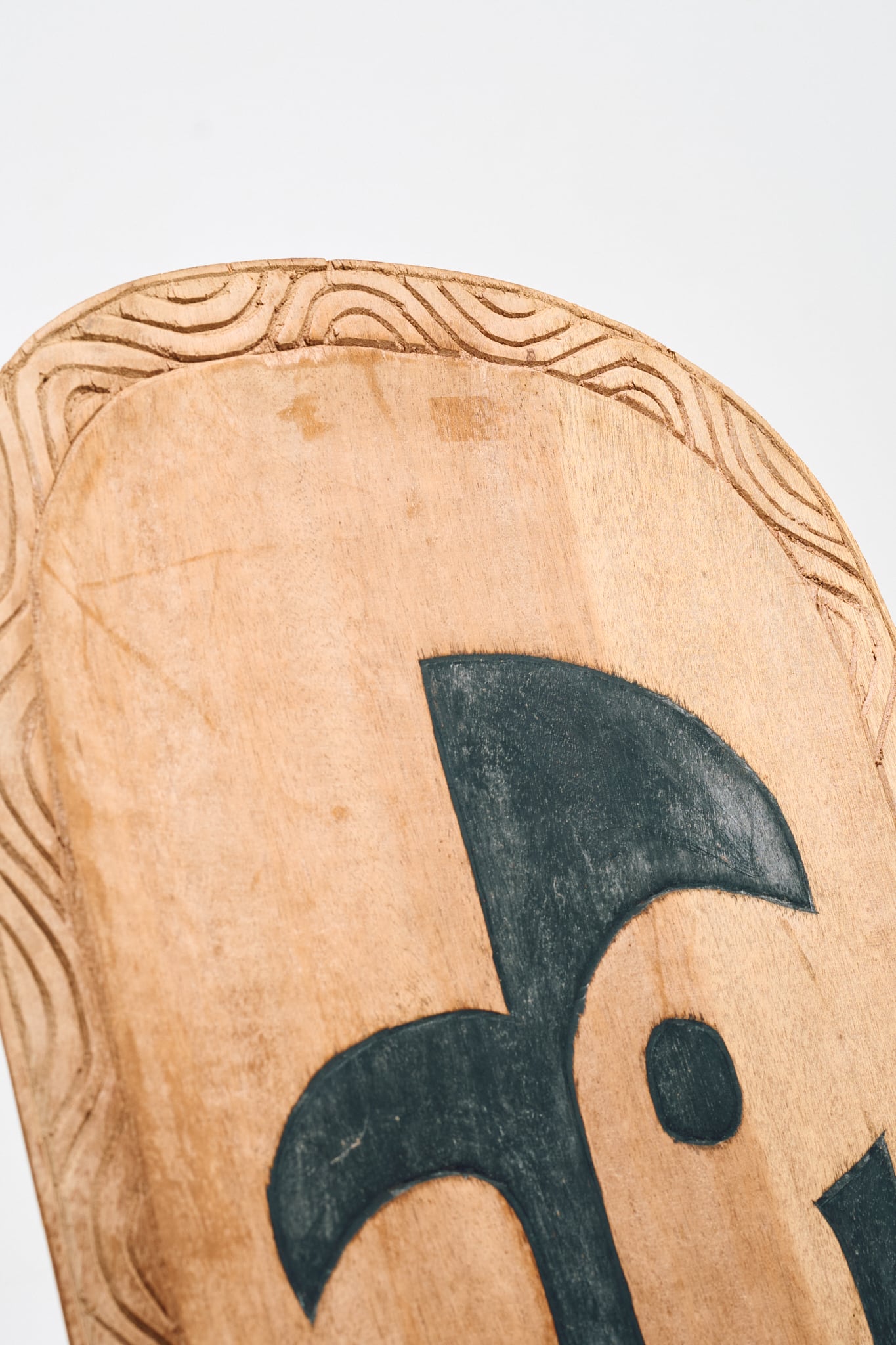 背板に特徴的なマークや、縁取るように波のような彫りがありますが、詳細な出自は分かりませんでした。現地に駐在していた方からの放出品なので、セヌフォなどの比較的有名な民族のものと推察されます。
