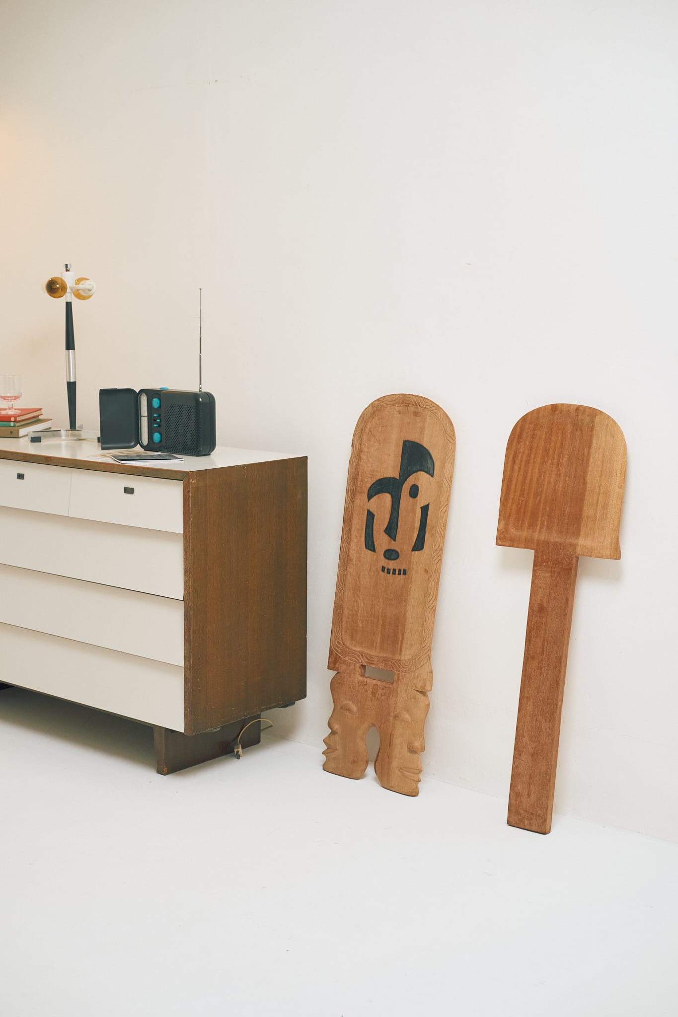 アフリカの民芸品の魅力というのは、無作為な造形だったり、時の経過を感じさせるダイナミックさでしょう。近年はモダンデザインのファニチャーやインテリアアイテムと、フォークアートを組み合わせるスタイリングが熱を帯びているように感じます。コートジボワールのセヌフォ族やダン族、マリのドゴン族など、民族特有の伝統的な装飾や造形が、画一的になりがちなモダンデザインの中に置くと良いうねりを生むのでしょう。