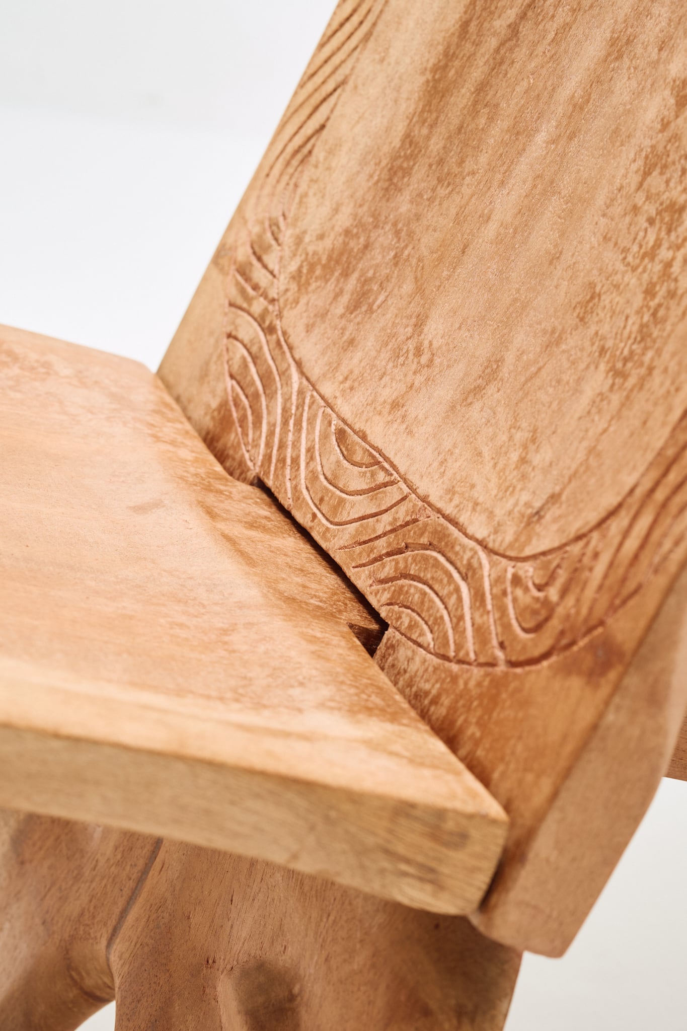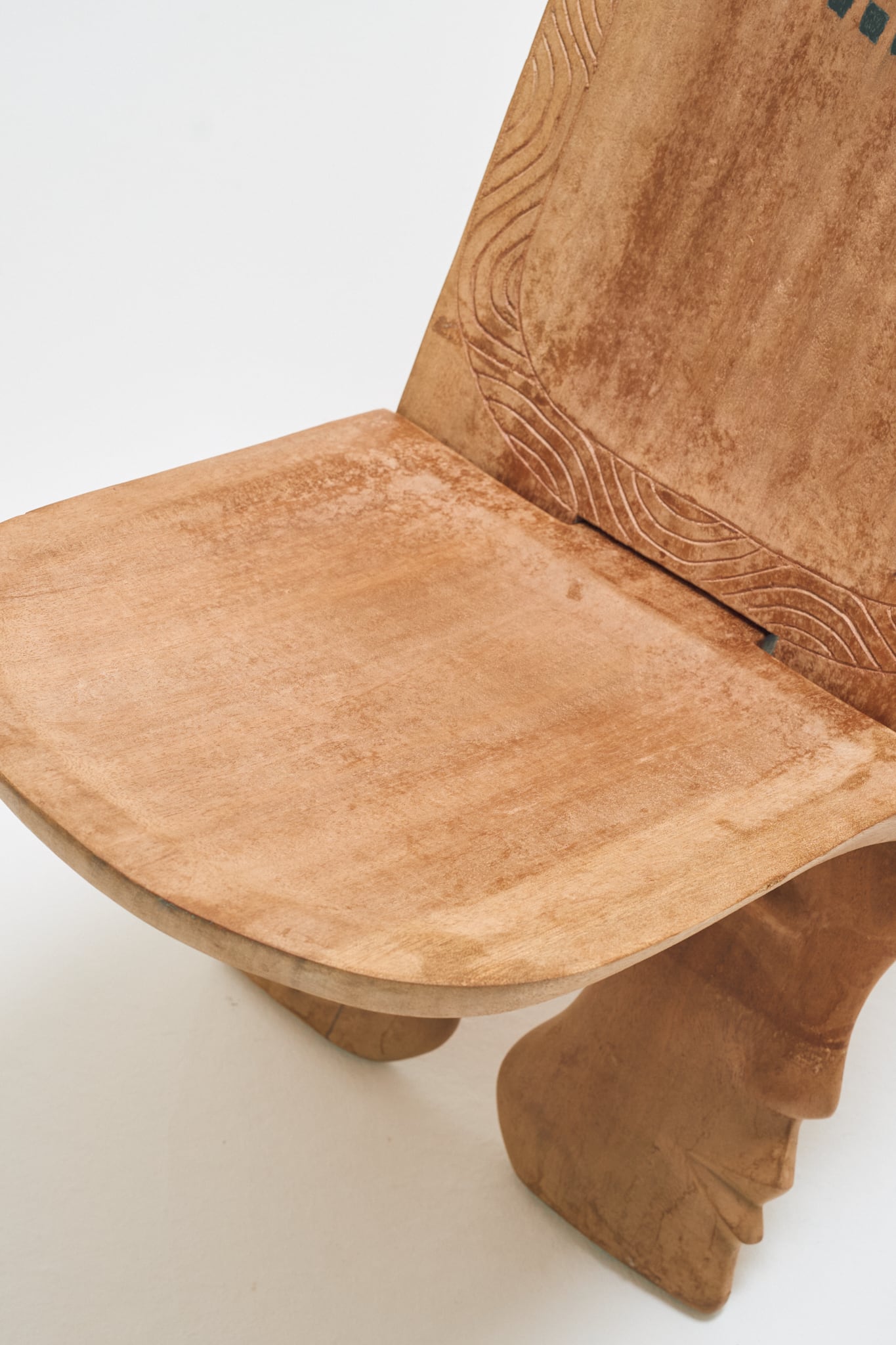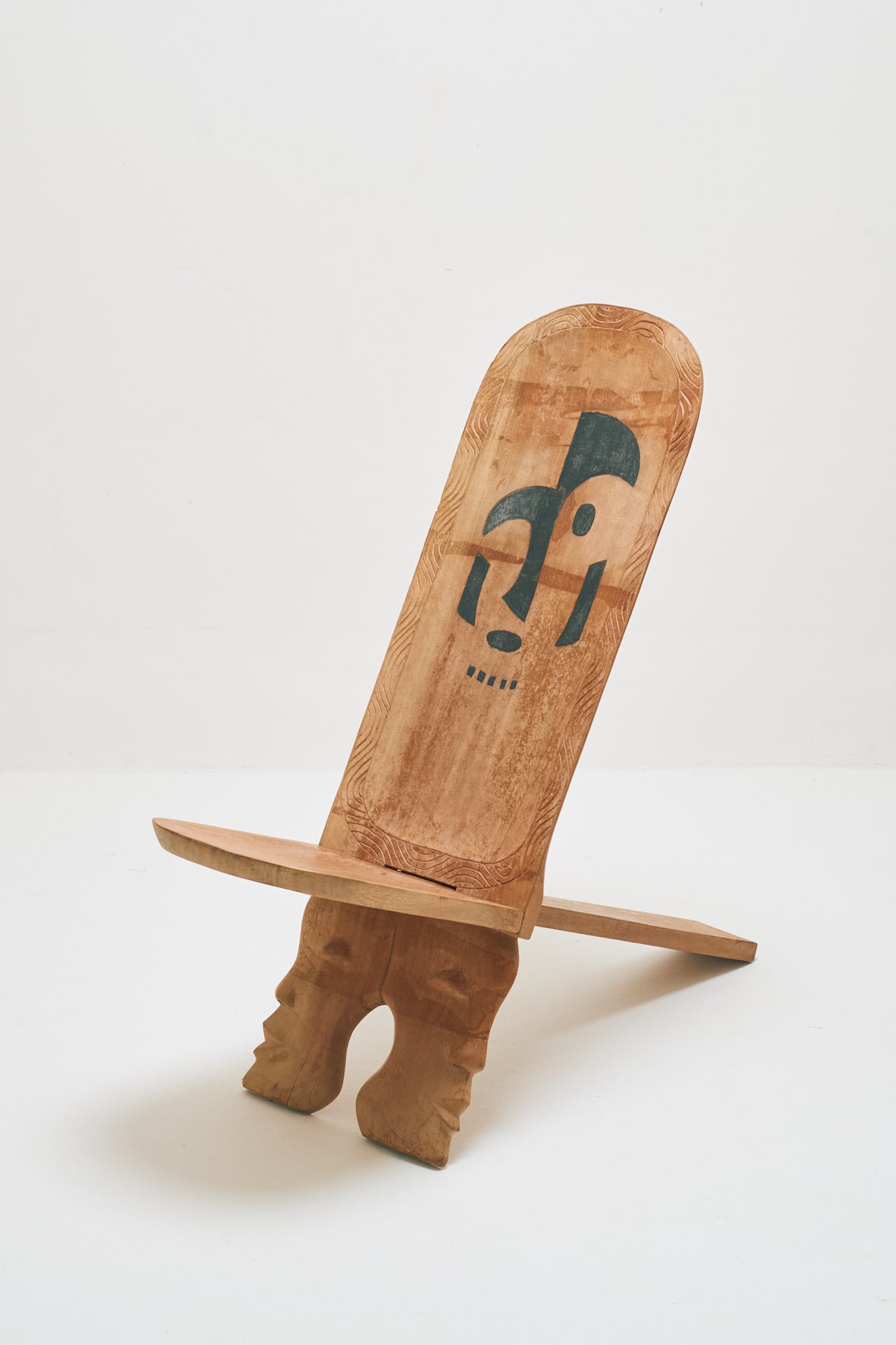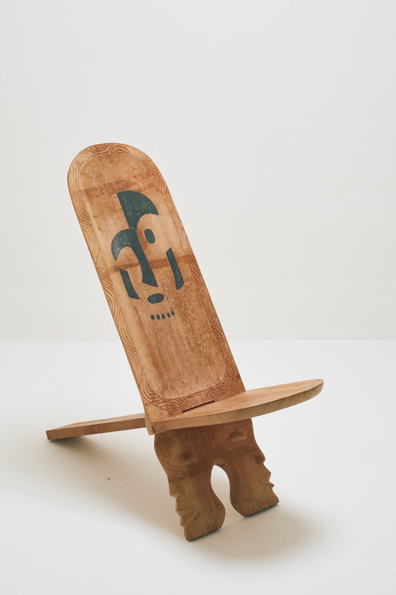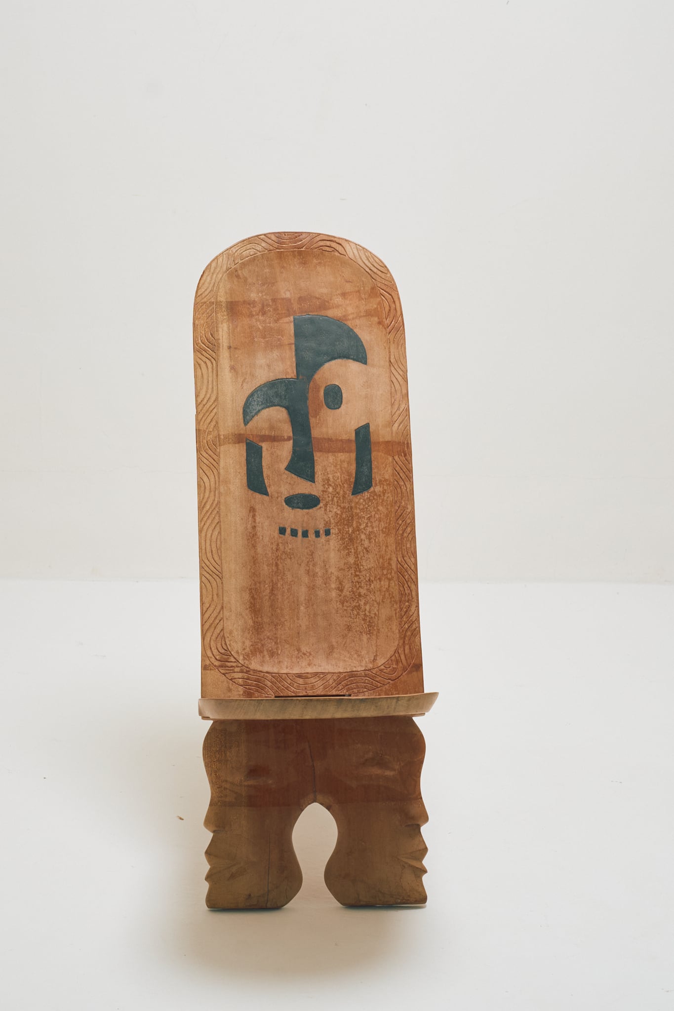 背板に特徴的なマークや、縁取るように波のような彫りがありますが、詳細な出自は分かりませんでした。現地に駐在していた方からの放出品なので、セヌフォなどの比較的有名な民族のものと推察されます。