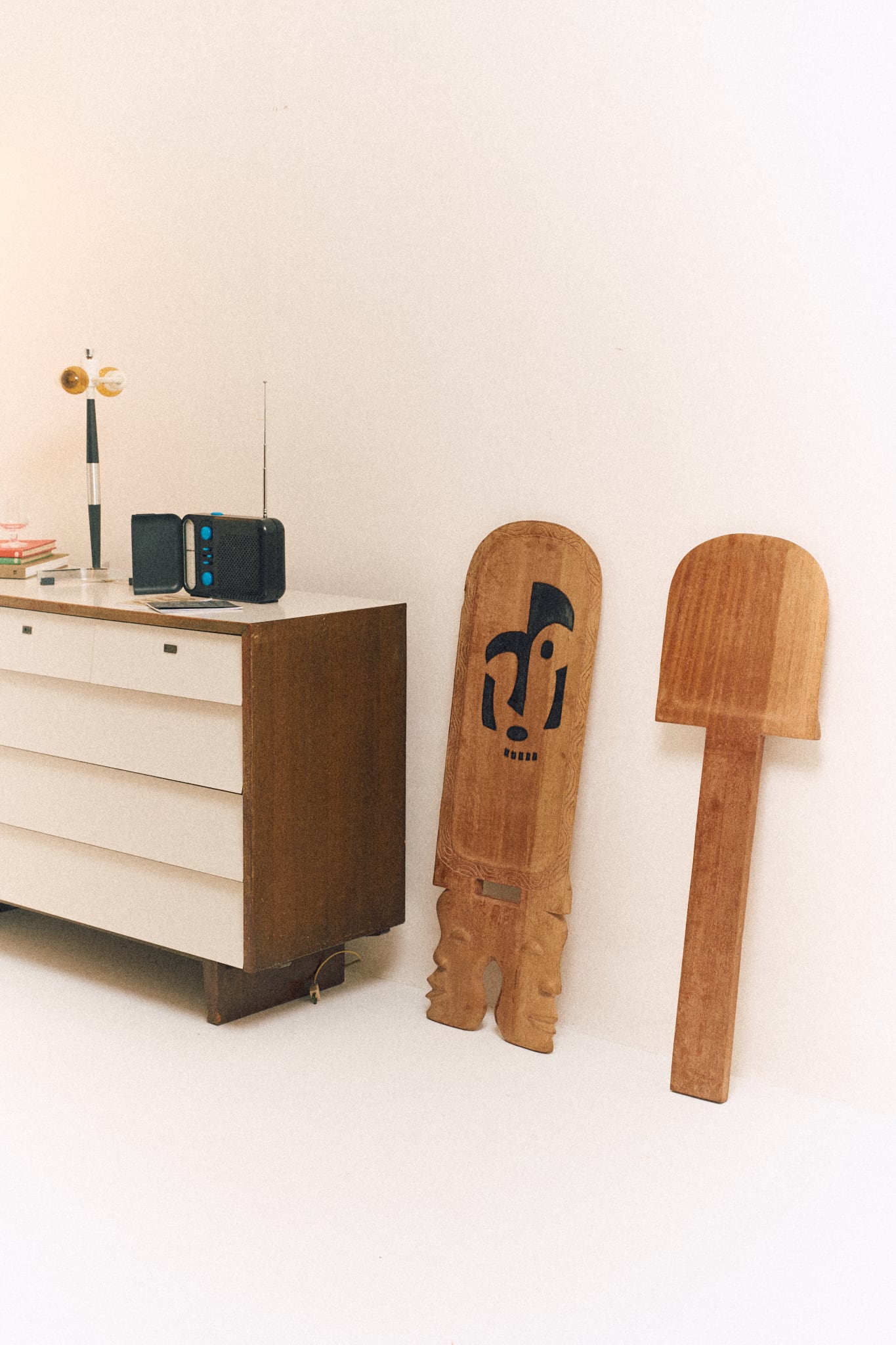 アフリカの民芸品の魅力というのは、無作為な造形だったり、時の経過を感じさせるダイナミックさでしょう。近年はモダンデザインのファニチャーやインテリアアイテムと、フォークアートを組み合わせるスタイリングが熱を帯びているように感じます。コートジボワールのセヌフォ族やダン族、マリのドゴン族など、民族特有の伝統的な装飾や造形が、画一的になりがちなモダンデザインの中に置くと良いうねりを生むのでしょう。
