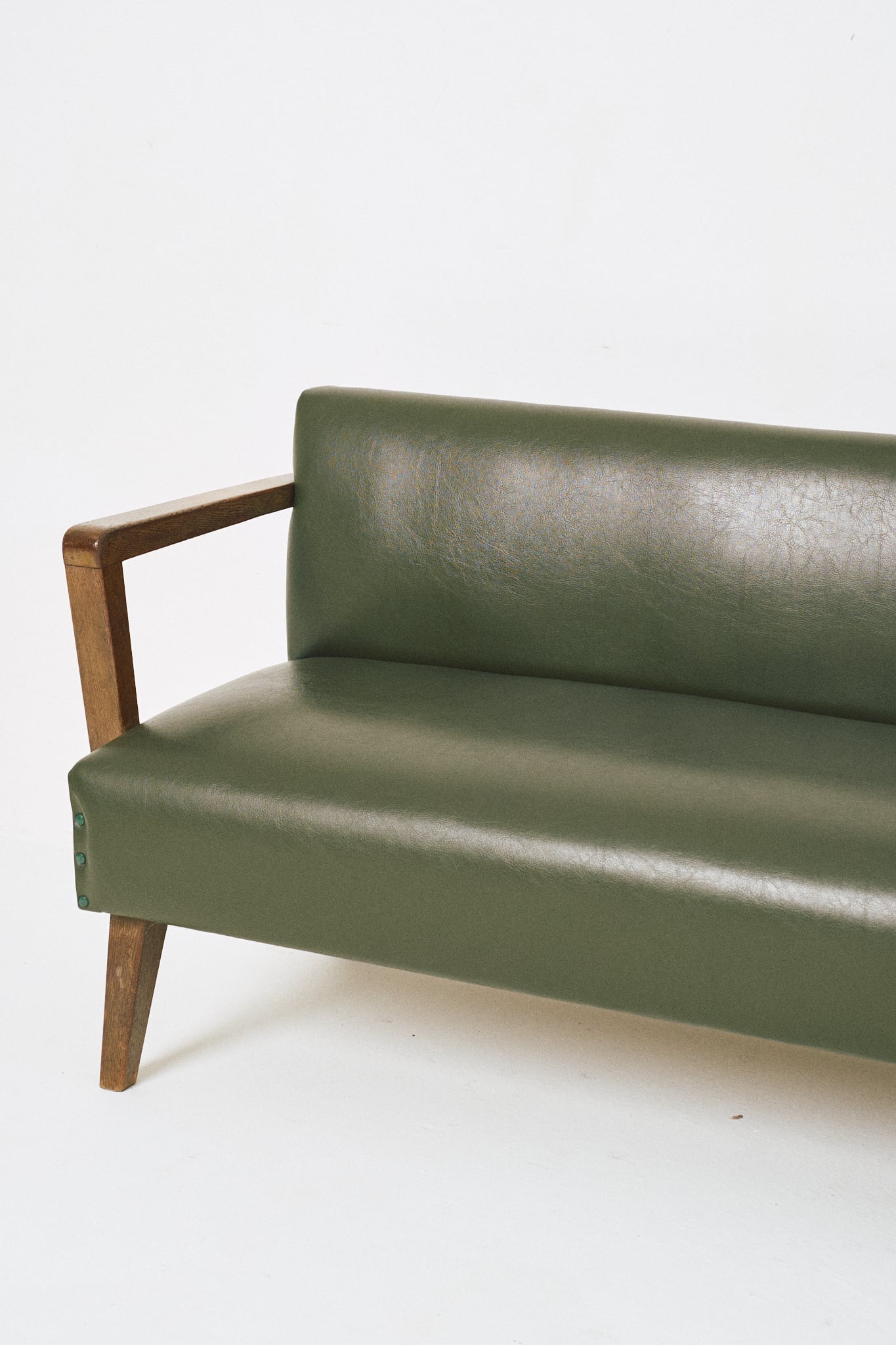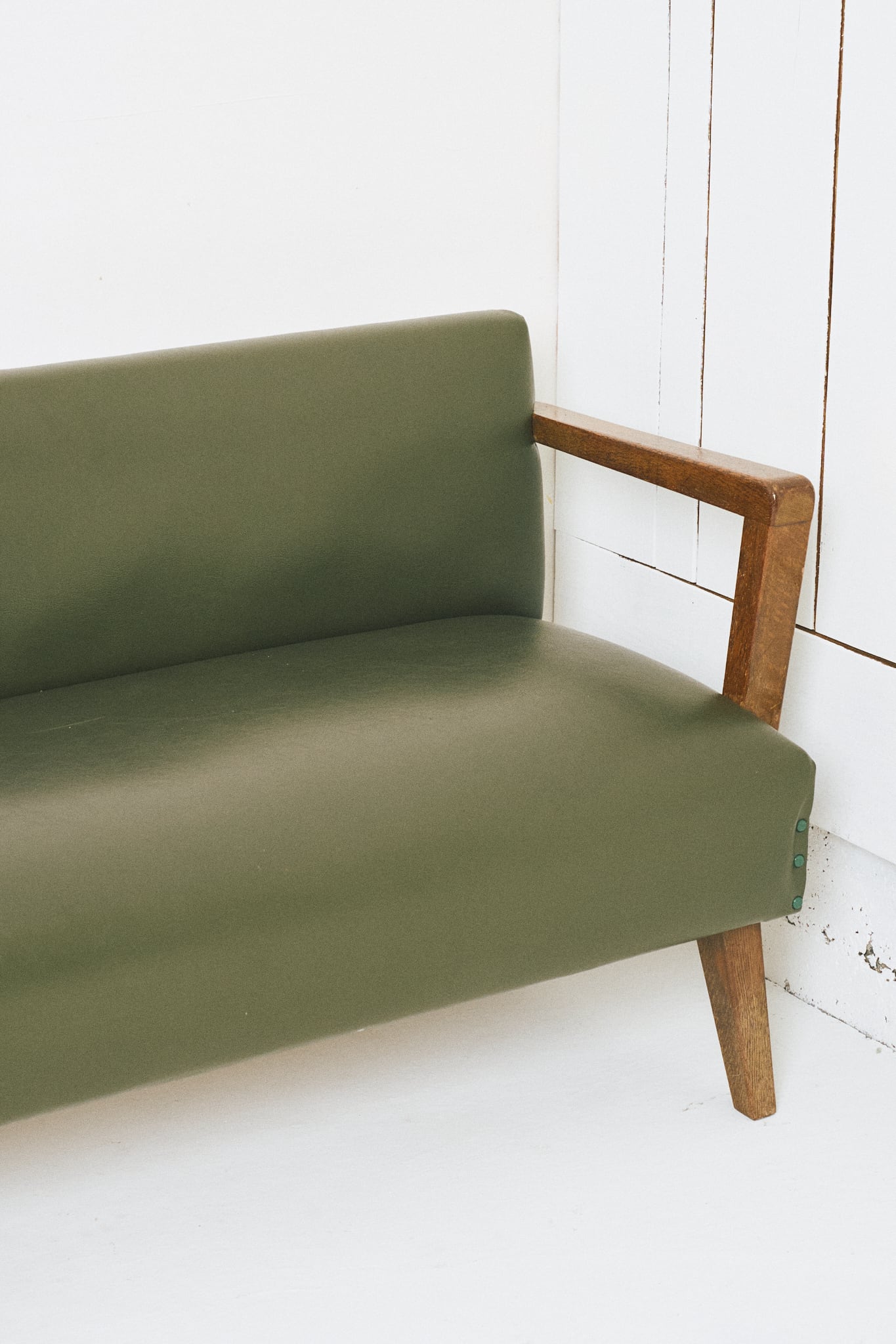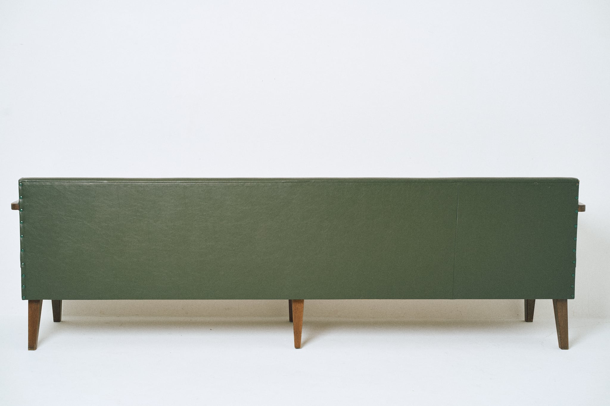 50-60年代の診療所などで使用されていた日本製ソファです。全幅は217cmで、3シーターを超える大きなサイズです。ただ、奥行きは50cmとコンパクトで圧迫感はありません。