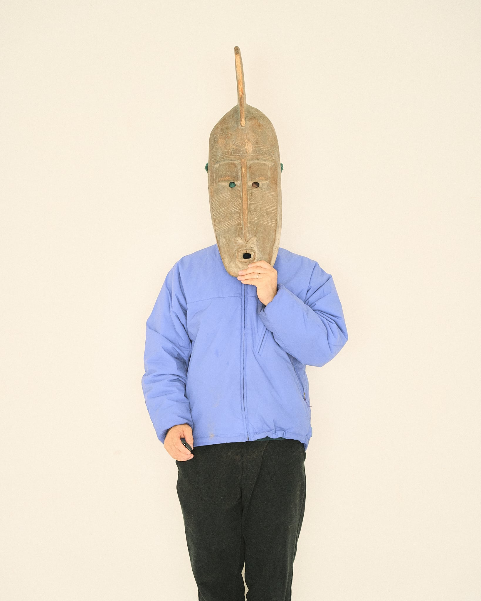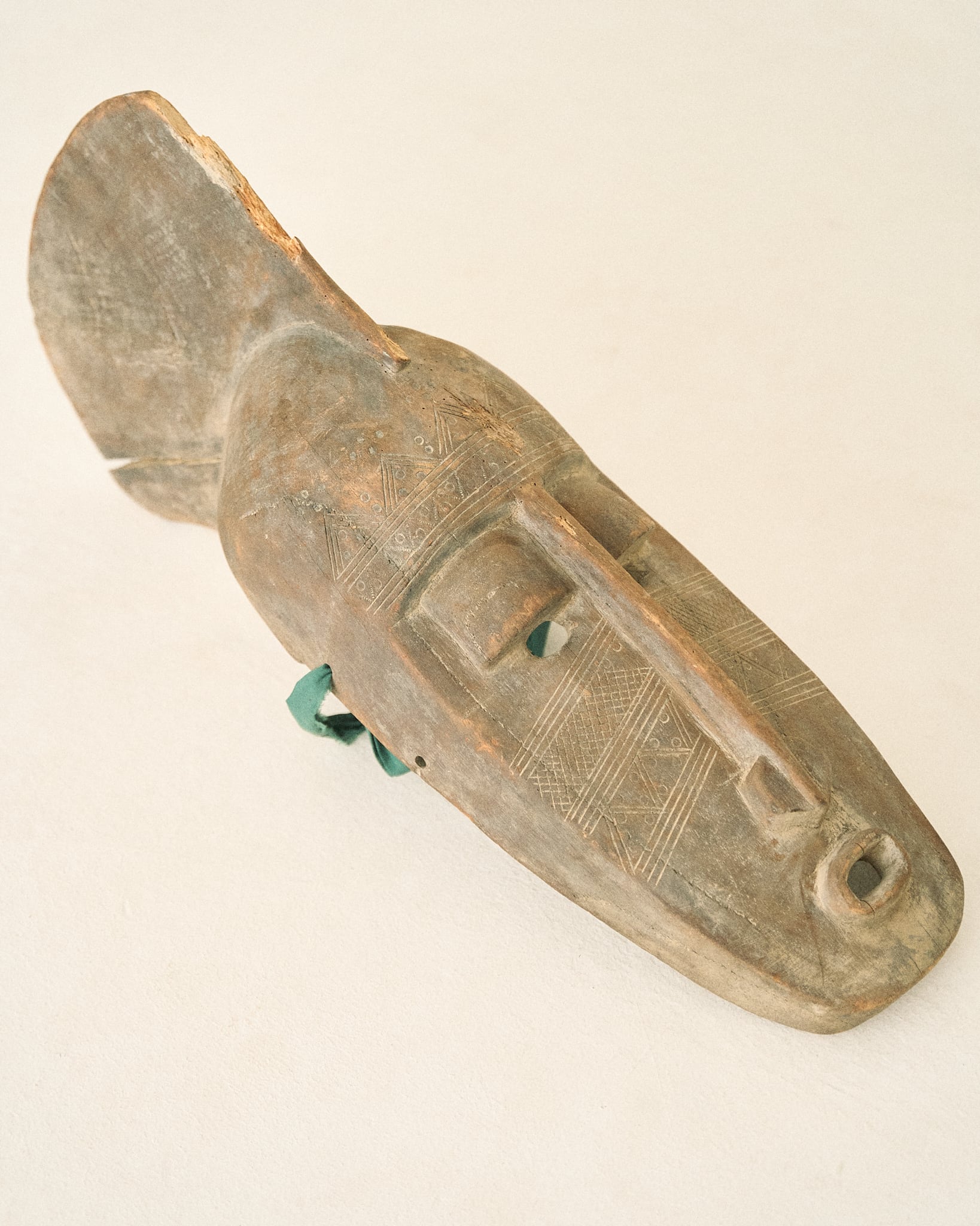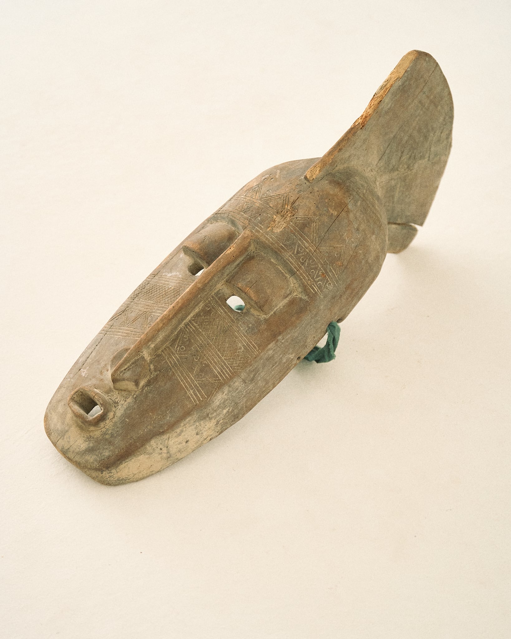 マリ共和国の先住民・バナマ族のものと思われるマスクです。 頭部についたフィンのような装飾や、面に施された彫りや、が特徴的です。 かなり大型のマスクで、現地での儀礼に使用されていたと考えられます。 年代もかなり古いと考えられる個体で、キクイムシによる穴あきや傷等が見受けられます。 W20cm D35cm H70cm