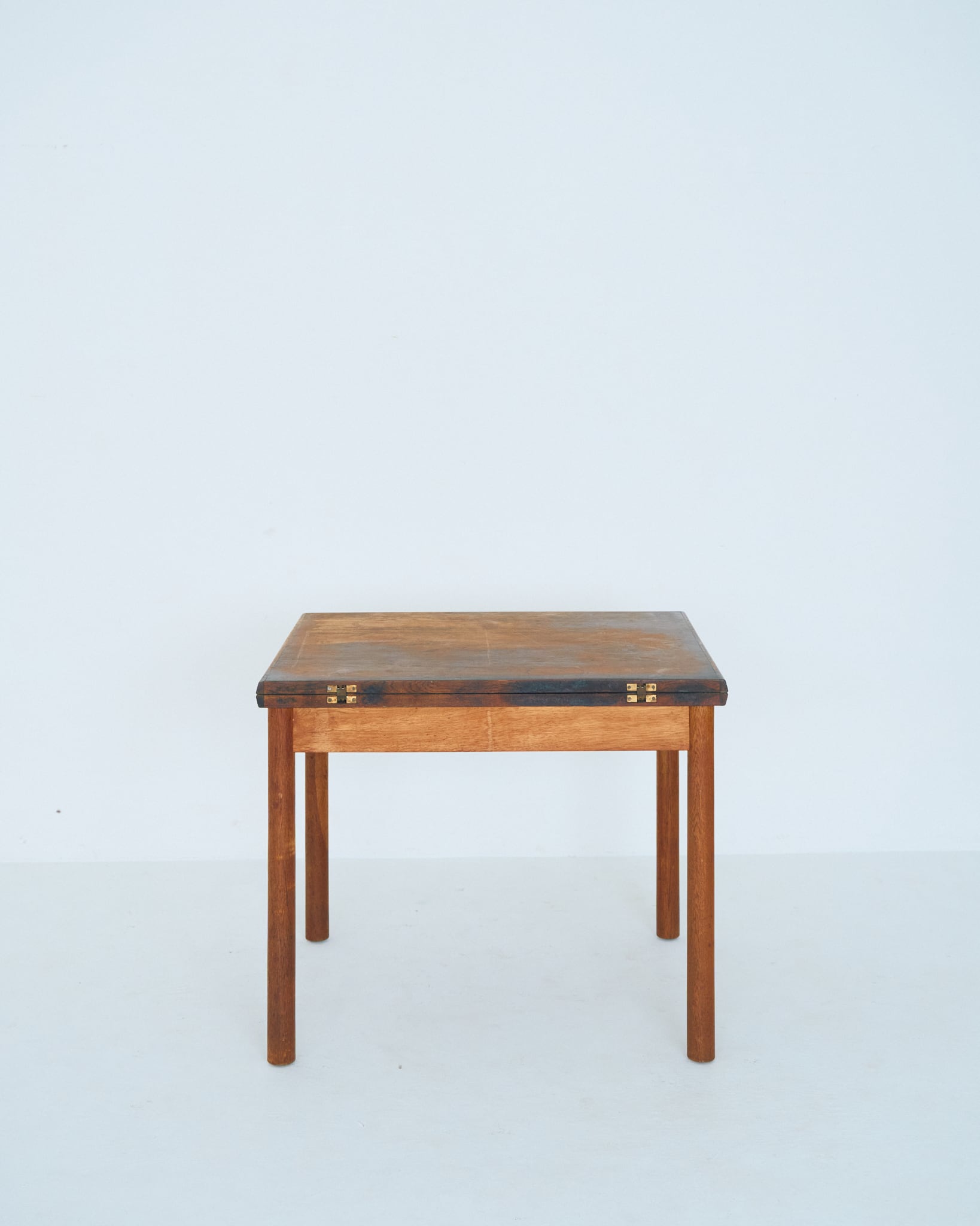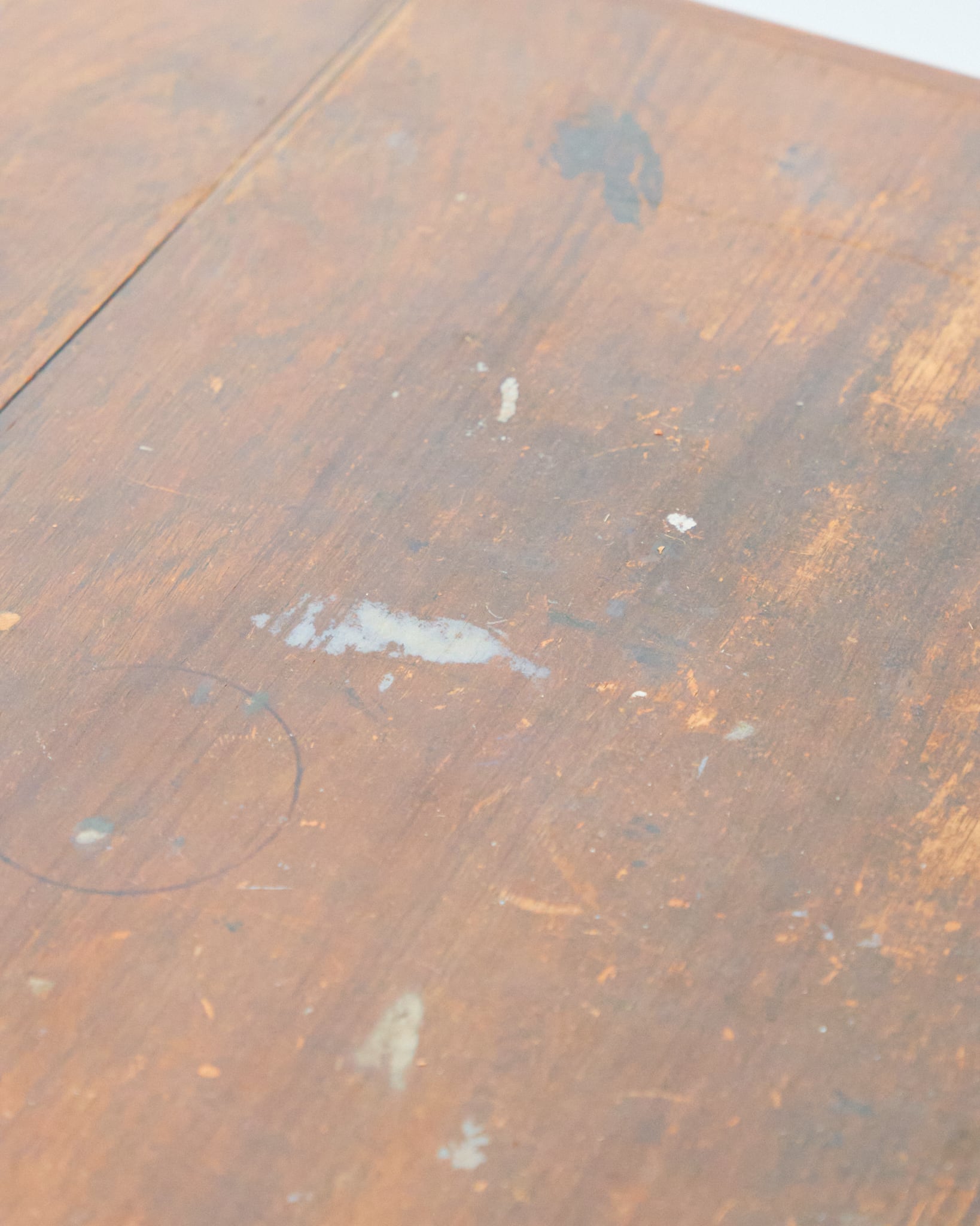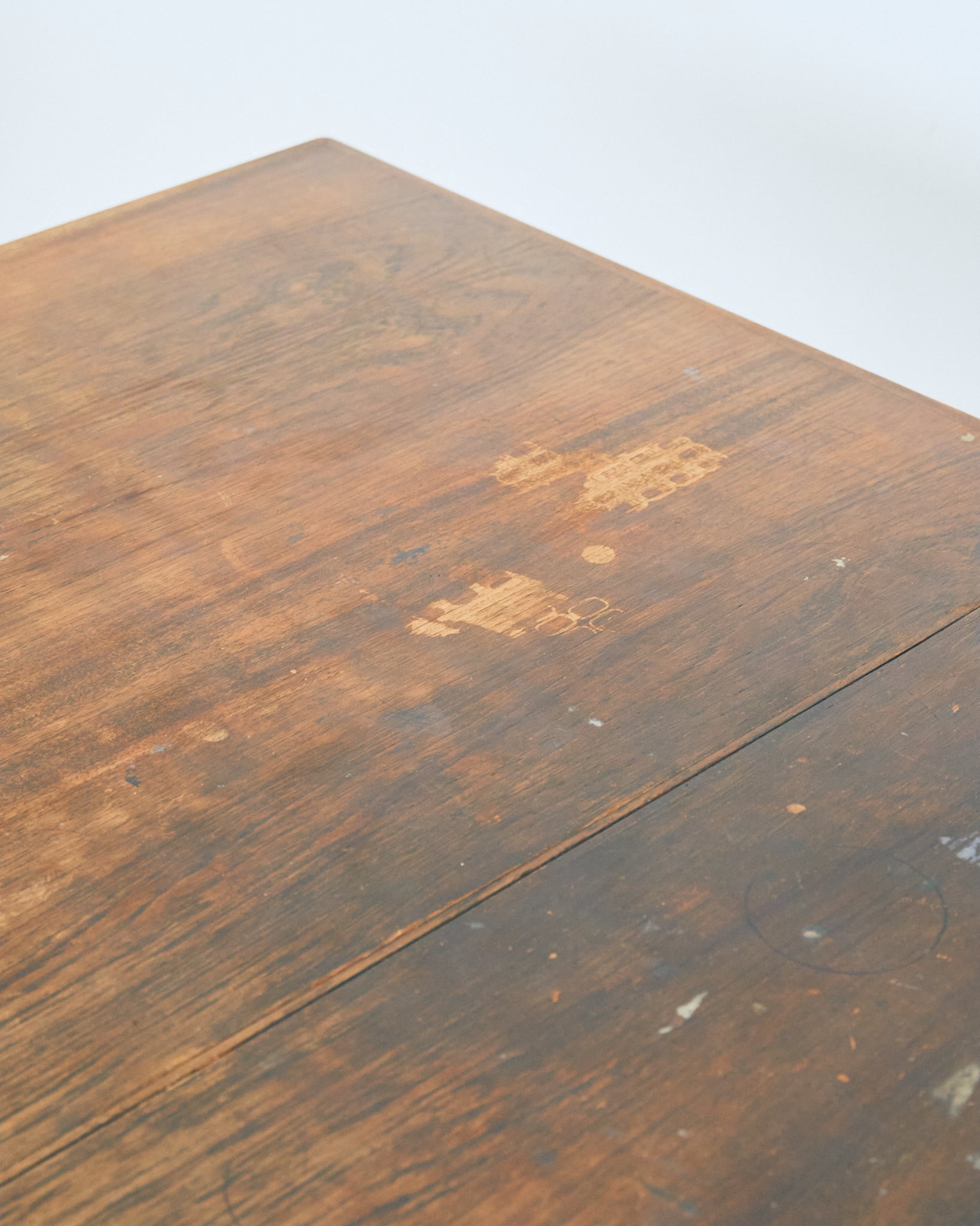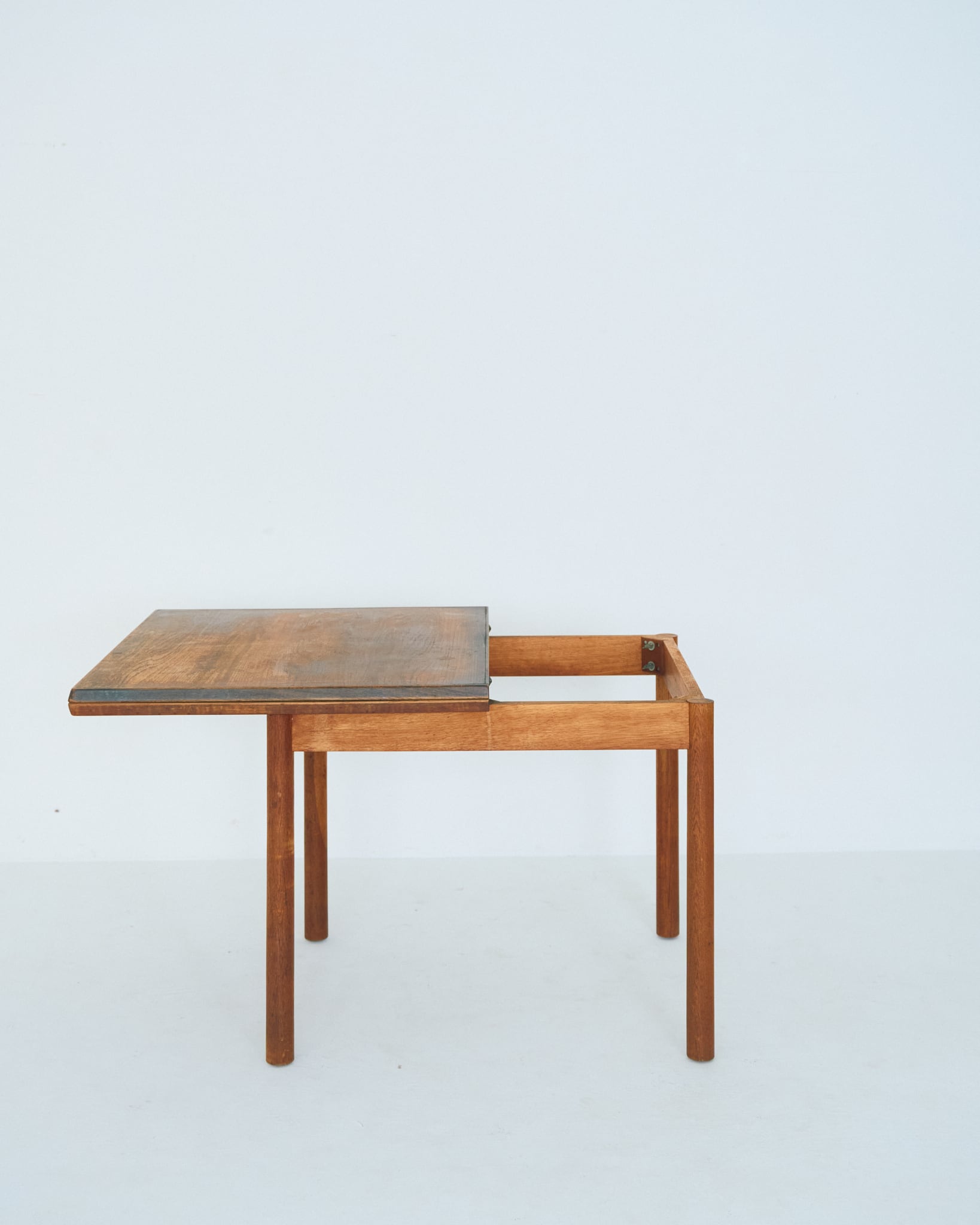 使用されているマイナスネジや経年具合などから考察すると、本個体は60-70年代の個体だと思われます。天板には輪ジミや落とし切れない経年の変化があります。古道具として風格漂う佇まいである様に感じます。