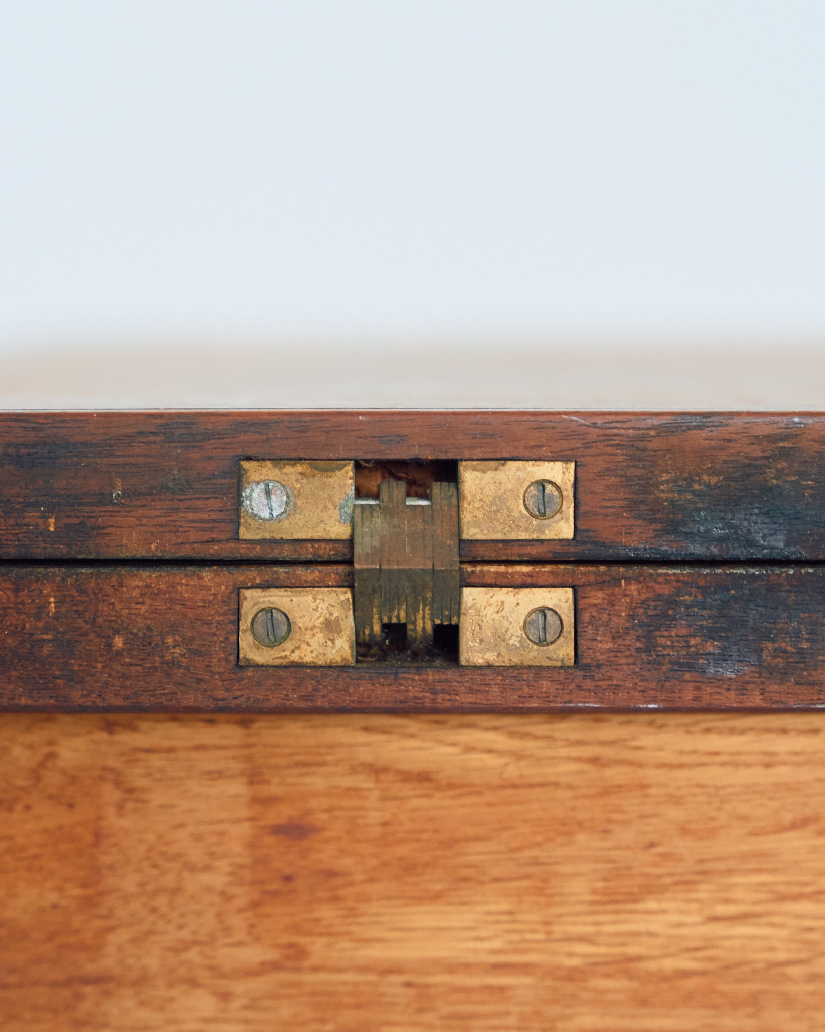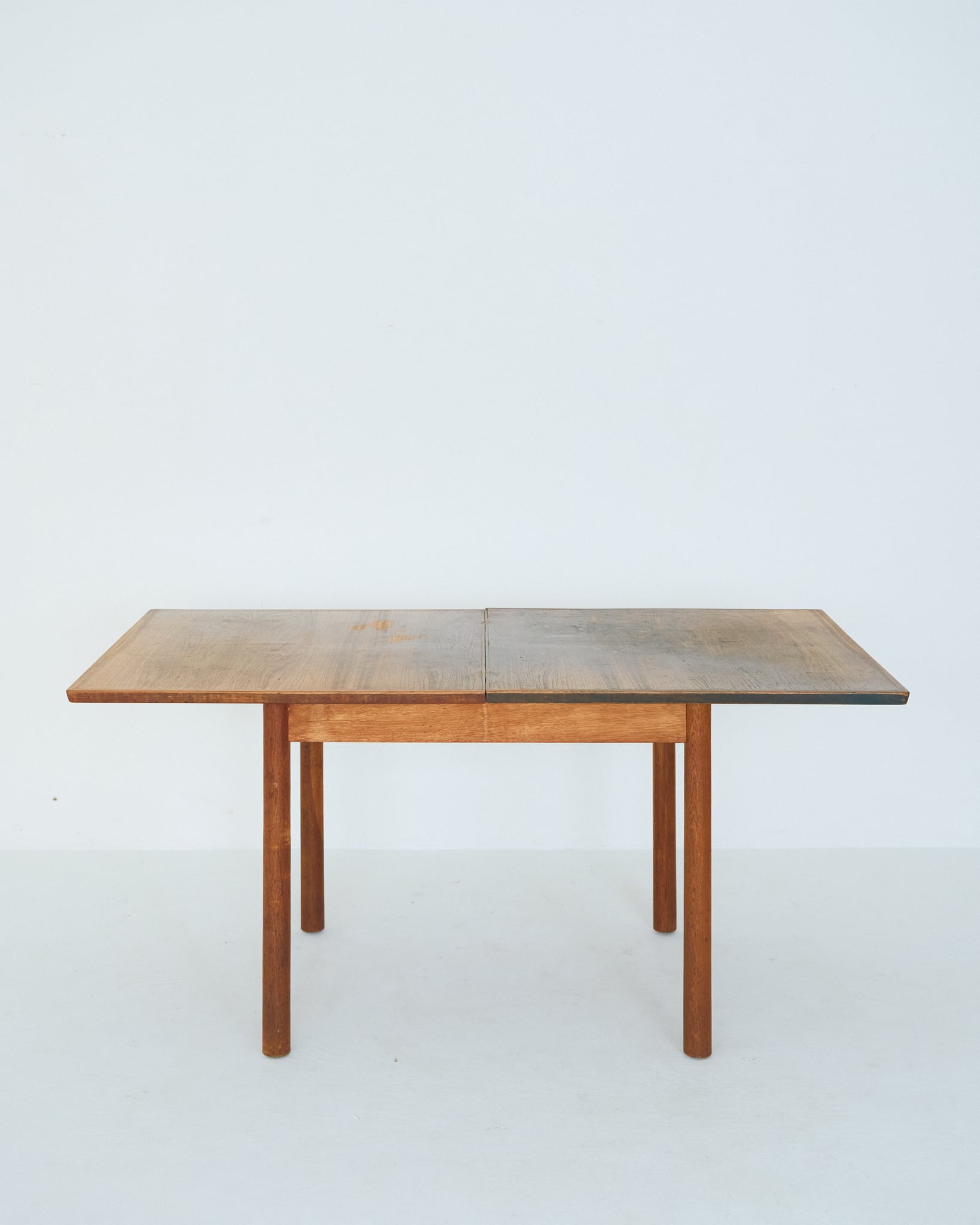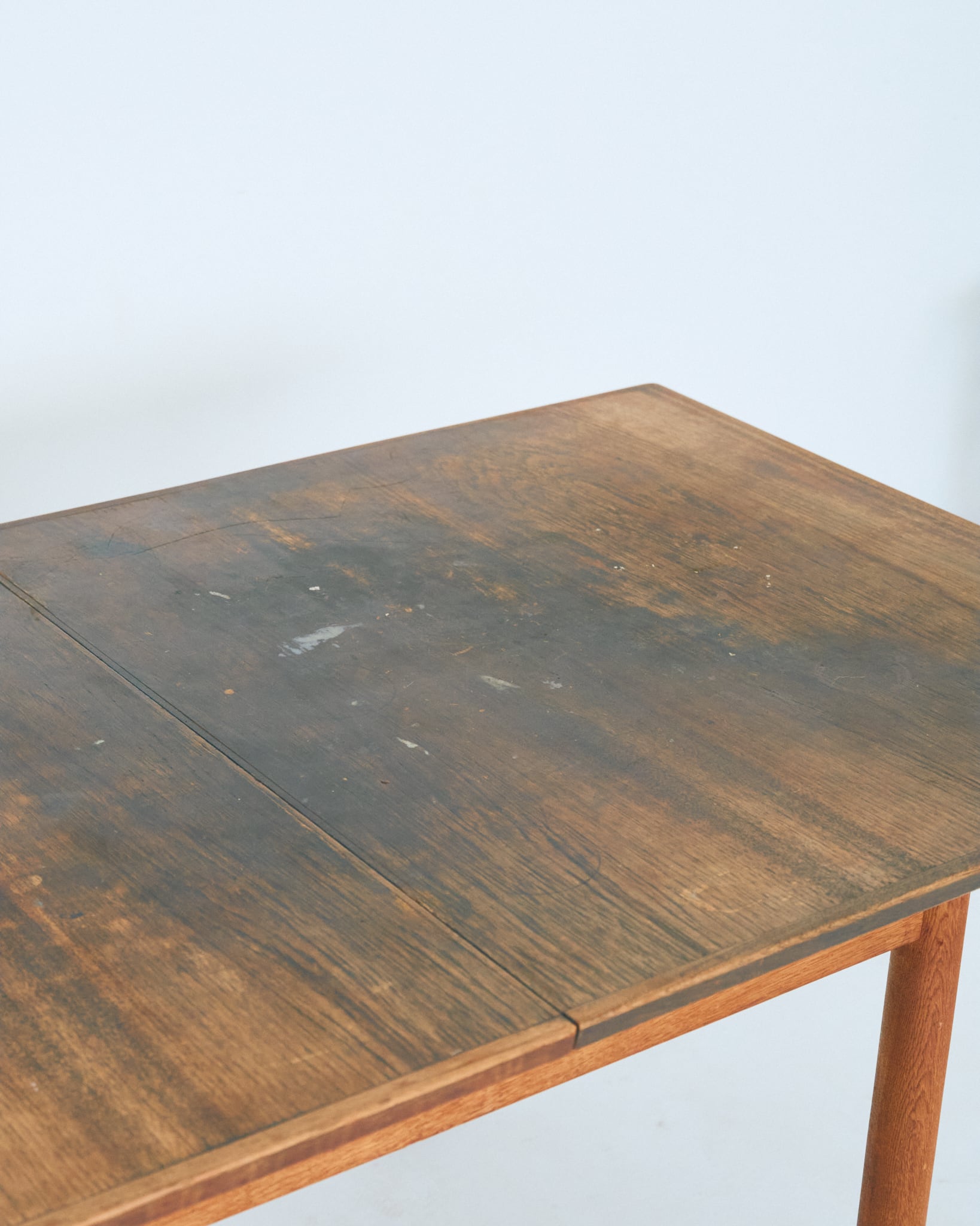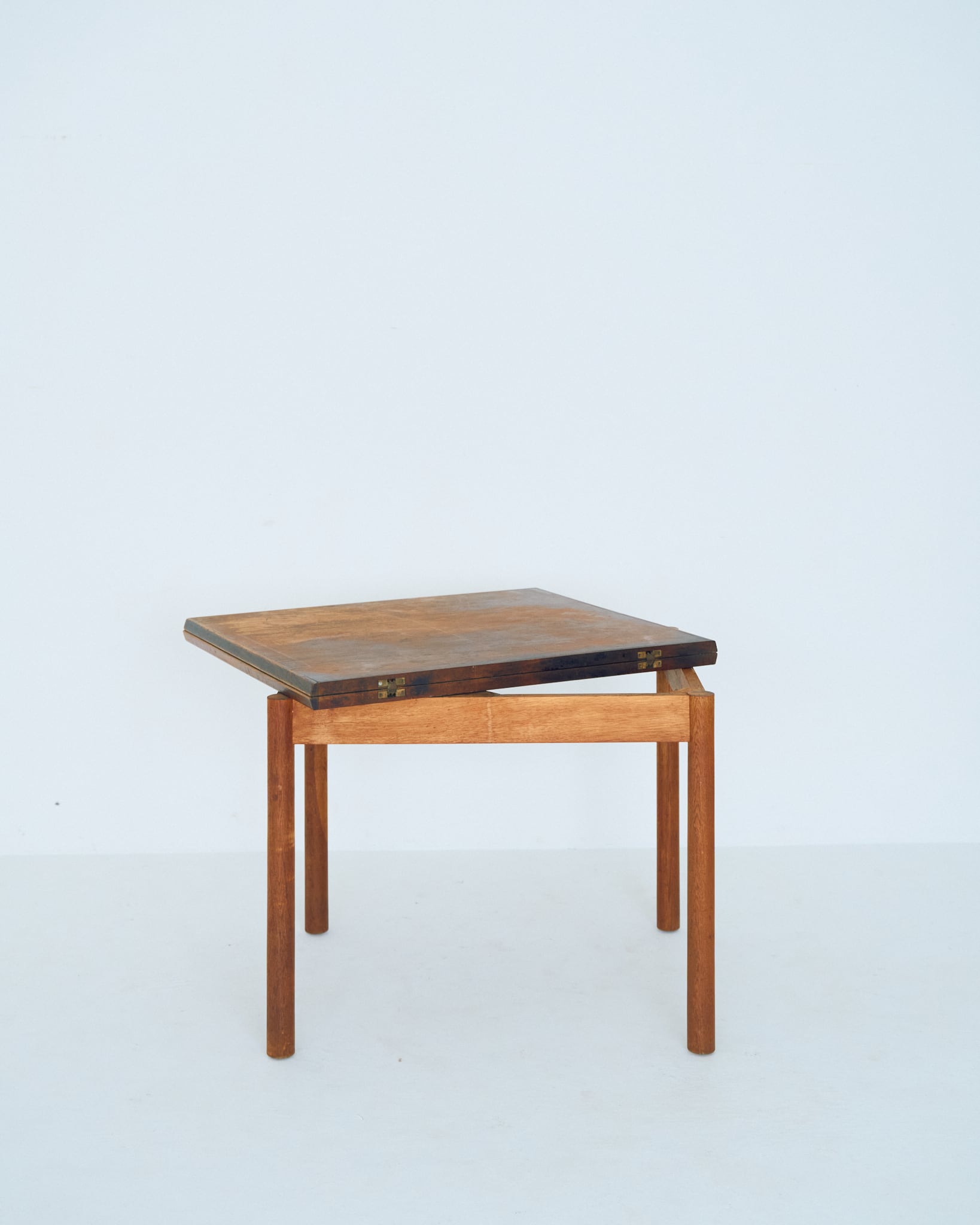使用されているマイナスネジや経年具合などから考察すると、本個体は60-70年代の個体だと思われます。天板には輪ジミや落とし切れない経年の変化があります。古道具として風格漂う佇まいである様に感じます。