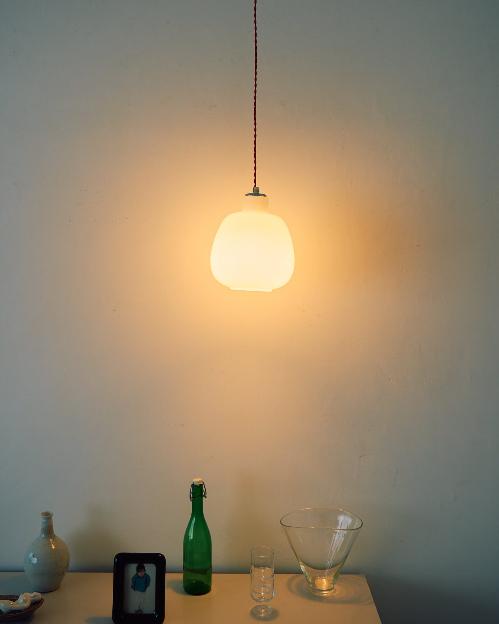 ポテっとしたフォルムが可愛らしいペンダントライトです。60-70年代頃の日本製と思われます。
