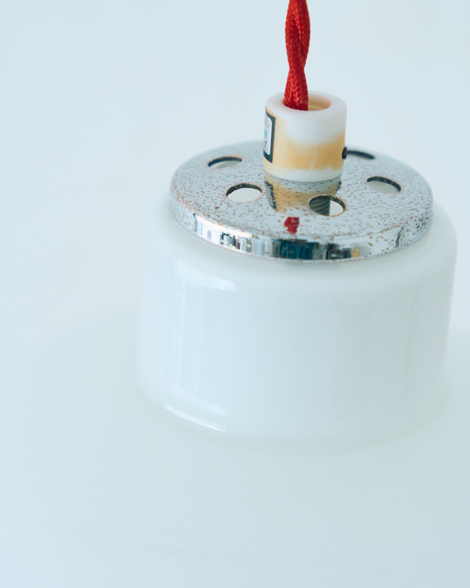シェード全体は綺麗な艶が特徴的なガラスでできており、電球からの光が全体に広がり、柔らかからく辺りを照らします。