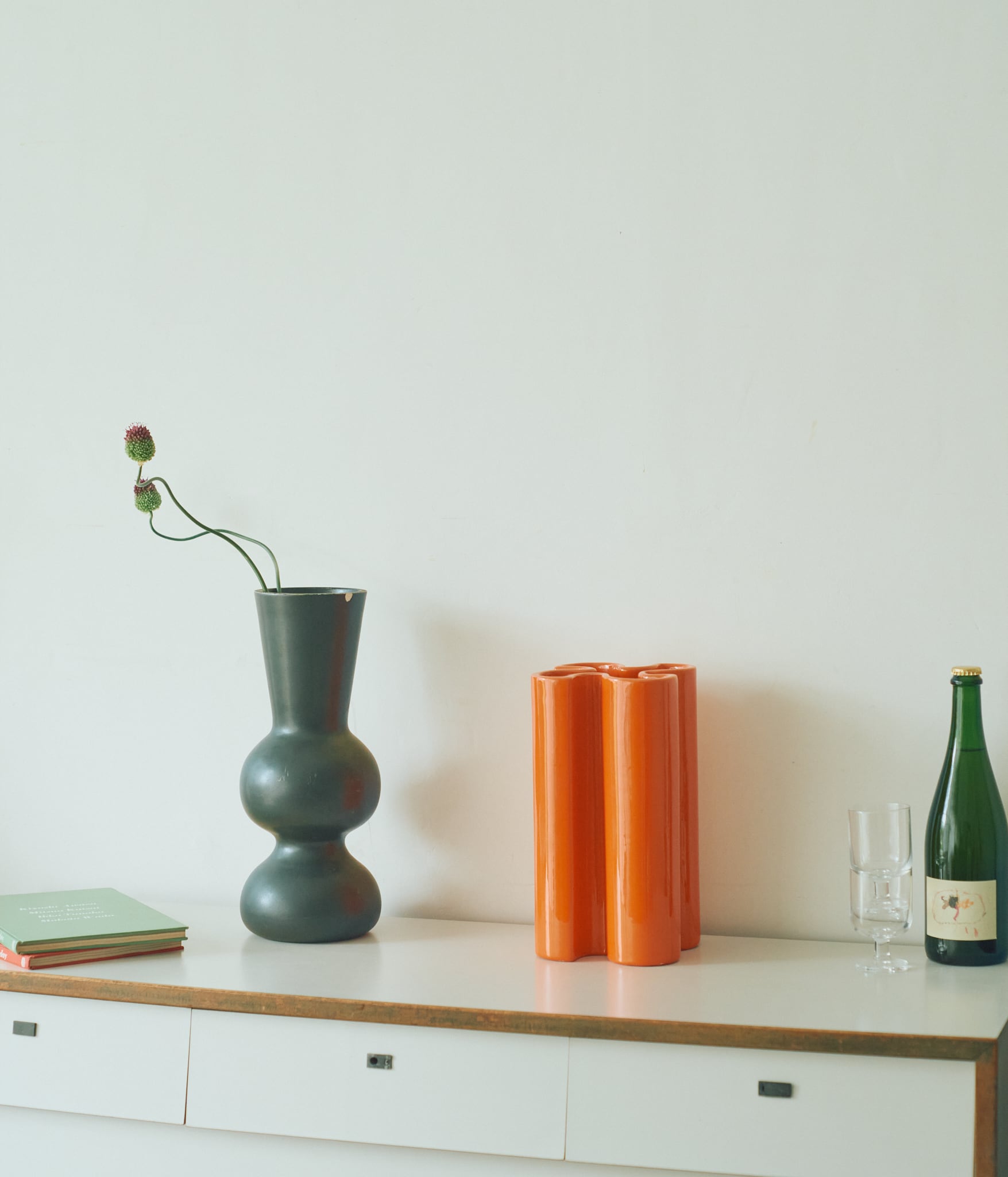今回入荷したフラワーベースは上から見ると風車のような造形が特徴的です。Franco Bettonicaのフラワーベースはどれも遊び心を感じさせるものが多いですが、こちらも同様に花を生けなくても様になる佇まいであるように感じます。